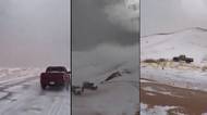 Unikátní scenérie. Saúdskoarabskou poušť zasypaly kroupy