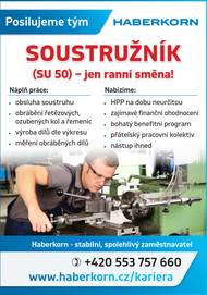 hledá pro oddělení Zakázkové výroby na ul. Sokolské v Mokrých Lazcích vhodného kandidáta na pozici: SOUSTRUŽNÍK (SU 50) – jen ranní směna.