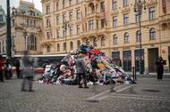 Čtyři tuny oblečení na náměstí Republiky upozorňují na problém textilního odpadu