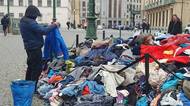 Hromada oblečení u Palladia na náměstí Republiky, která zde leží od pondělí 11. listopadu, se pomalu zmenšuje. Není to ale tím, že by ji město odváželo, lidé si totiž textil odnášejí sami.