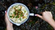 Nastavovaná bramborová kaše s kroupami a cibulkou