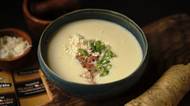 Krémová bramborová polévka s křenem a křupavou slaninou