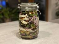 Nakládaný hermelín s olivami, bazalkou a sušenými rajčaty
