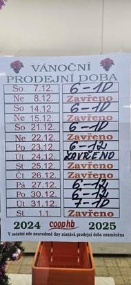 COOP družstvo HB - Vánoční prodejní doba