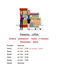 Zmena otváracích hodín v mesiaci december 2024.