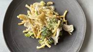 Víkendový oběd z jednoho pekáče: Zapečené krůtí maso s těstovinami a brokolicí