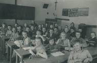 Jako první obrázek ukazuji naši třídu ve škole v Protivanově v roce 1956 - chodila jsem do 5. třídy. V zimě se zde topilo ve vysokých kamnech, začátek vyučovací hodiny se ohlašoval kravským zvonečkem, kterým vždy služba proběhla vyšlapané schody v naší stařičké budově.