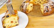 Nadýchaný koláč s rozinkami a jablky je plný rozmanitých ingrediencí. Pokrm je ideální jako sladká snídaně i dezert k odpolední kávě.