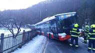 Autobus MHD skončil v příkopu i s cestujícími. Ze silnice sklouzl kvůli ledovce