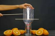 Vymačkání džusu bez odšťavňovače. Potřebujete pouze dvě PET láhve a špejle