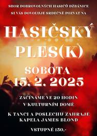 Pozvánka na hasičský ples(k) s kapelou James Blond ve Džbánicích