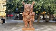 V centru Prahy stojí socha bronzového nosorožce v brnění