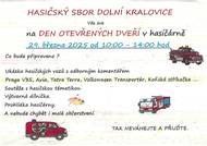 Dolni Kralovice: Hasičský sbor Dolní Kralovice zve na Den otevřených dveří, a to 29. března od 10:00 do 14:00 do hasičárny - ukázka vozidel, soutěže atd.