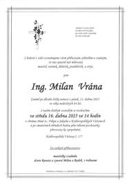 z Královopolských Vážan zemřel dne 11. dubna 2025 ve věku nedožitých 84 let