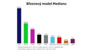 Sněmovní volby by v březnu vyhrálo hnutí ANO se ziskem 32,5 procenta hlasů. Druhá koalice Spolu by měla 18,5 procenta, hnutí STAN 13 procent. Následují Piráti s osmi procenty. Hnutí SPD by získalo 7,5 procenta, Motoristé sobě šest procent a hnutí Stačilo! 5,5 procenta. Vyplývá to z volebního modelu Medianu, který agentura zveřejnila ve čtvrtek. Konal se od 1. do 31. března a zúčastnilo se ho celkem 1025 lidí.