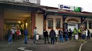 Lidé čekají na vánoční dárky v dlouhých frontách