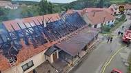 Hostinci na Tišnovsku shořela střecha a plameny málem poničily i obecní úřad