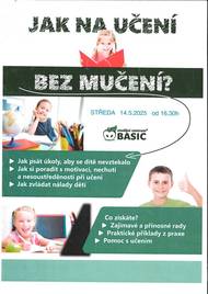 Studijní centrum Basic nabízí bezplatnou přednášku "Jak na učení bez mučení", ve středu 14. 5. 2025 od 16:30, Na Valech 3523, Havlíčkův Brod. Dále nabízí letní příměstský tábor se specializovaným kurzem na zlepšení paměti a soustředěnosti dětí a intenzivní letní doučování.