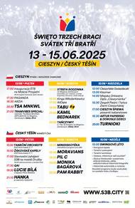 Města Český Těšín a Cieszyn spolu s Kulturním a společenským střediskem „Střelnice" a Cieszyńskim Ośrodkiem Kultury „Dom Narodowy“ v Cieszynie Vás zvou k účasti na 33. ročníku festivalu Svátek Tří Bratří 2025, tedy společné oslavy našich měst spojených řekou Olší!