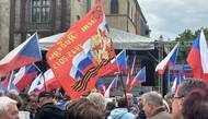 FOTO, VIDEO: Ruské vlajky i svatojiřské stuhy. Čtyři tisíce stoupenců SPD demonstrovaly v centru Prahy
