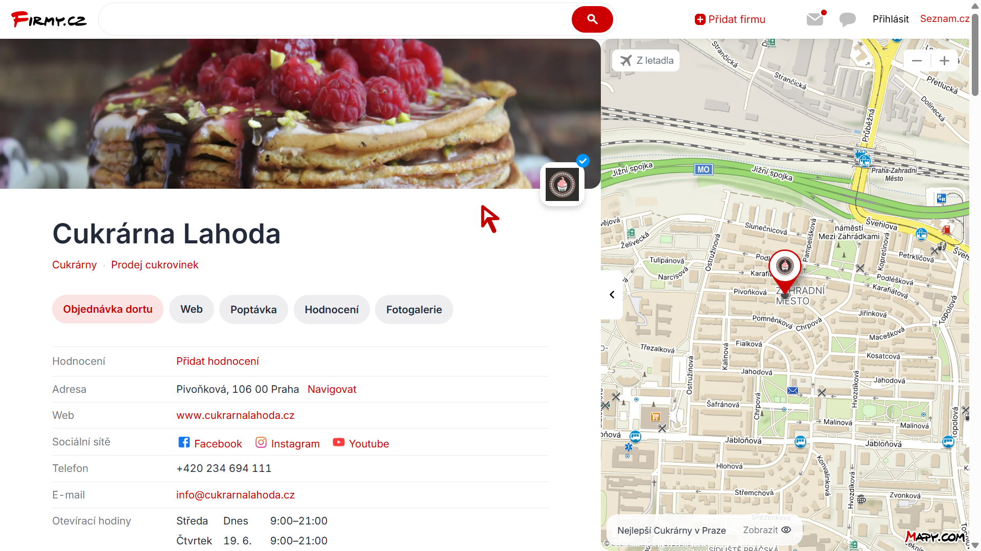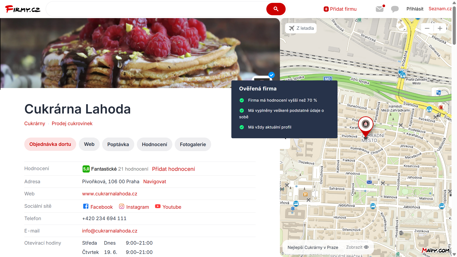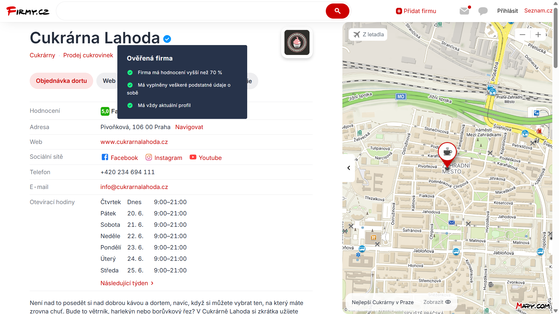 Na Firmy.cz, ve vyhledání Seznam.cz a na Mapy.cz se váš profil zobrazí výše. S větším obrázkem, webovou stránkou, telefonem, logem a možností naplánovat jedním klikem trasu až ke dveřím. Navíc získáte i cenný zpětný odkaz.