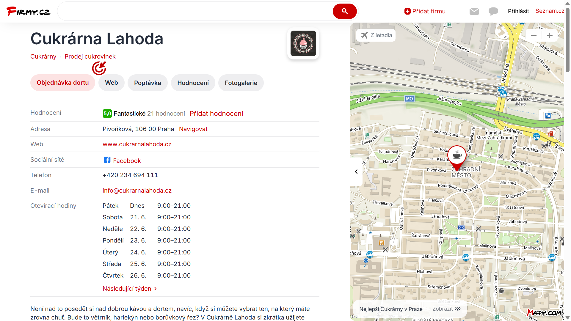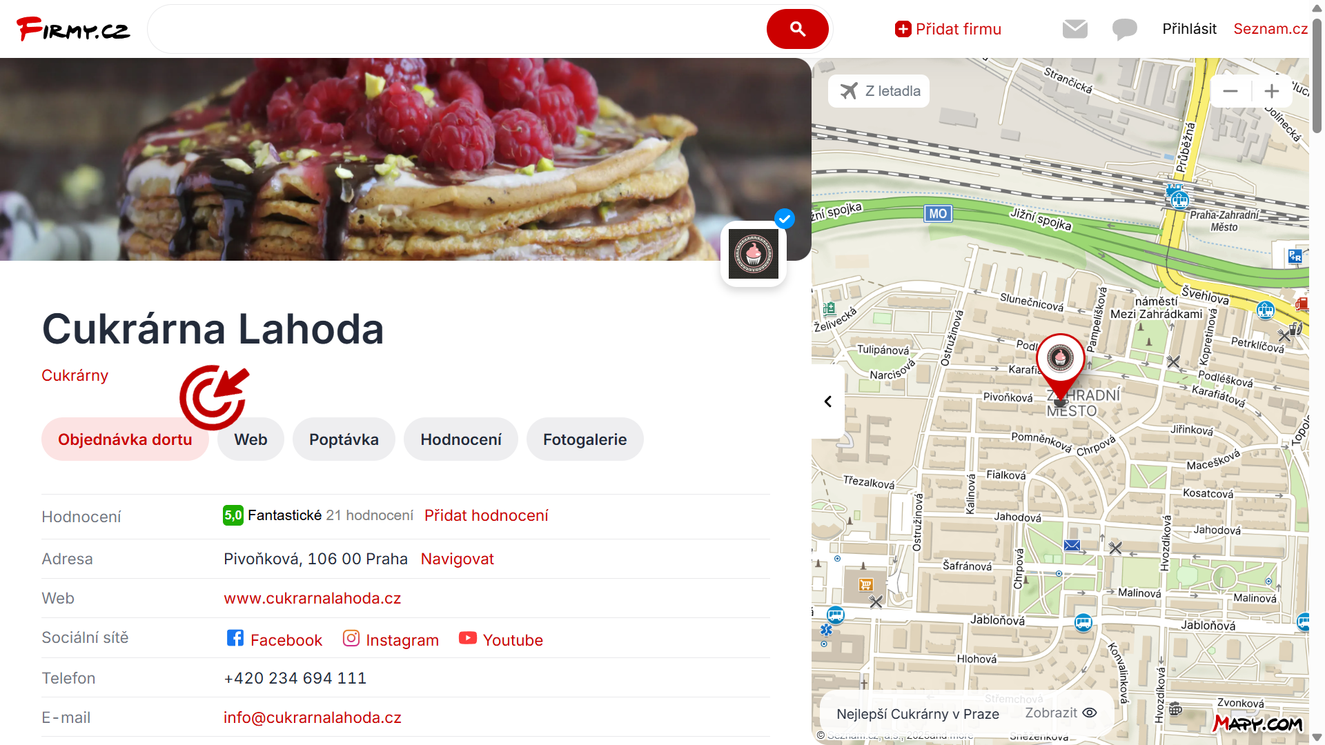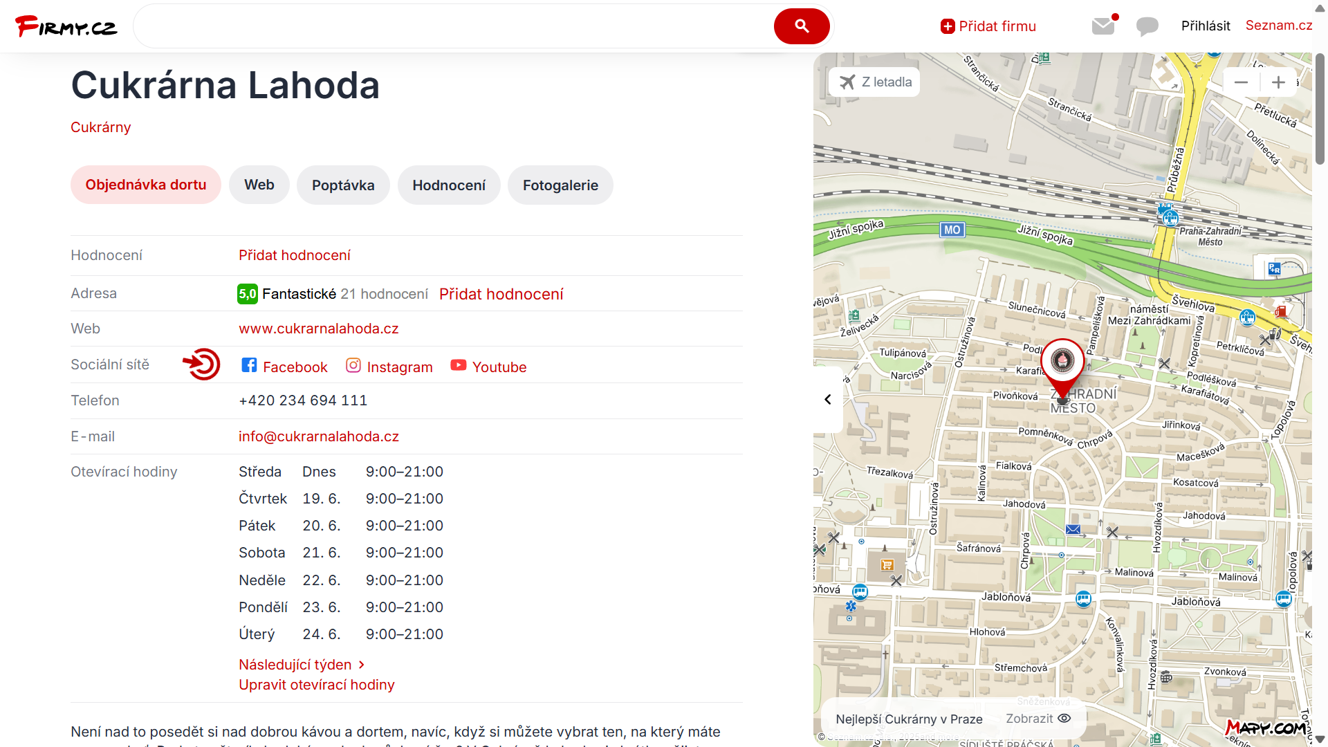 Na Firmy.cz, ve vyhledání Seznam.cz a na Mapy.cz se váš profil zobrazí výše. S větším obrázkem, webovou stránkou, telefonem, logem a možností naplánovat jedním klikem trasu až ke dveřím. Navíc získáte i cenný zpětný odkaz.