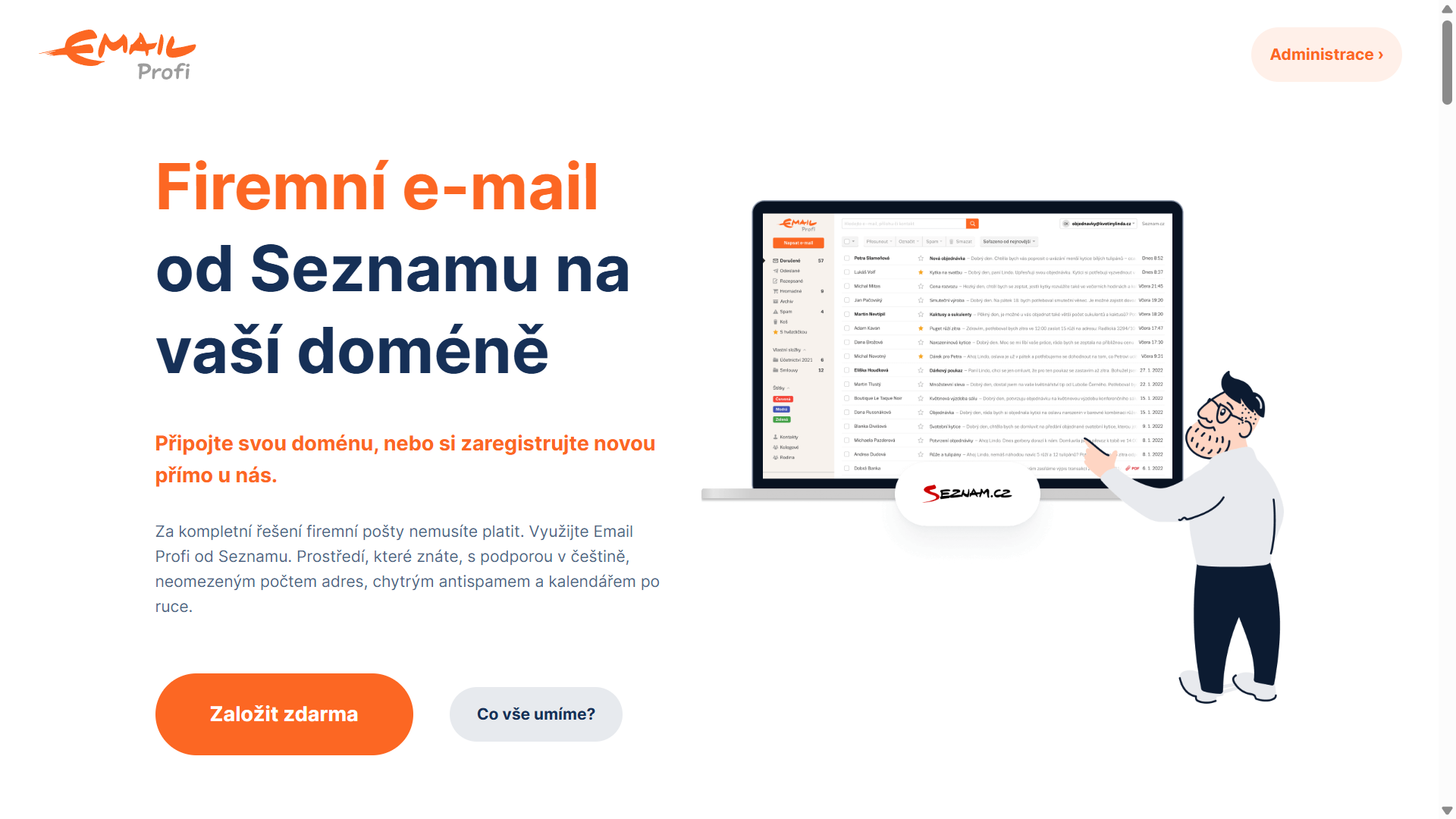 Získejte firemní e-mail ve známém prostředí Seznam Emailu s podporou v češtině a praktickým kalendářem.