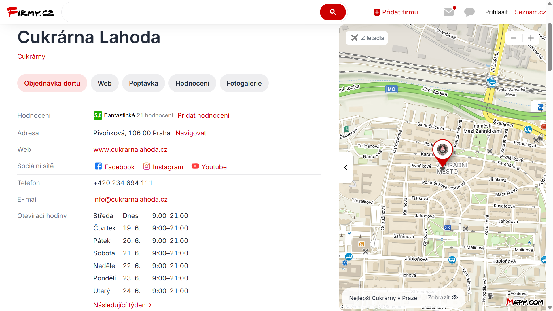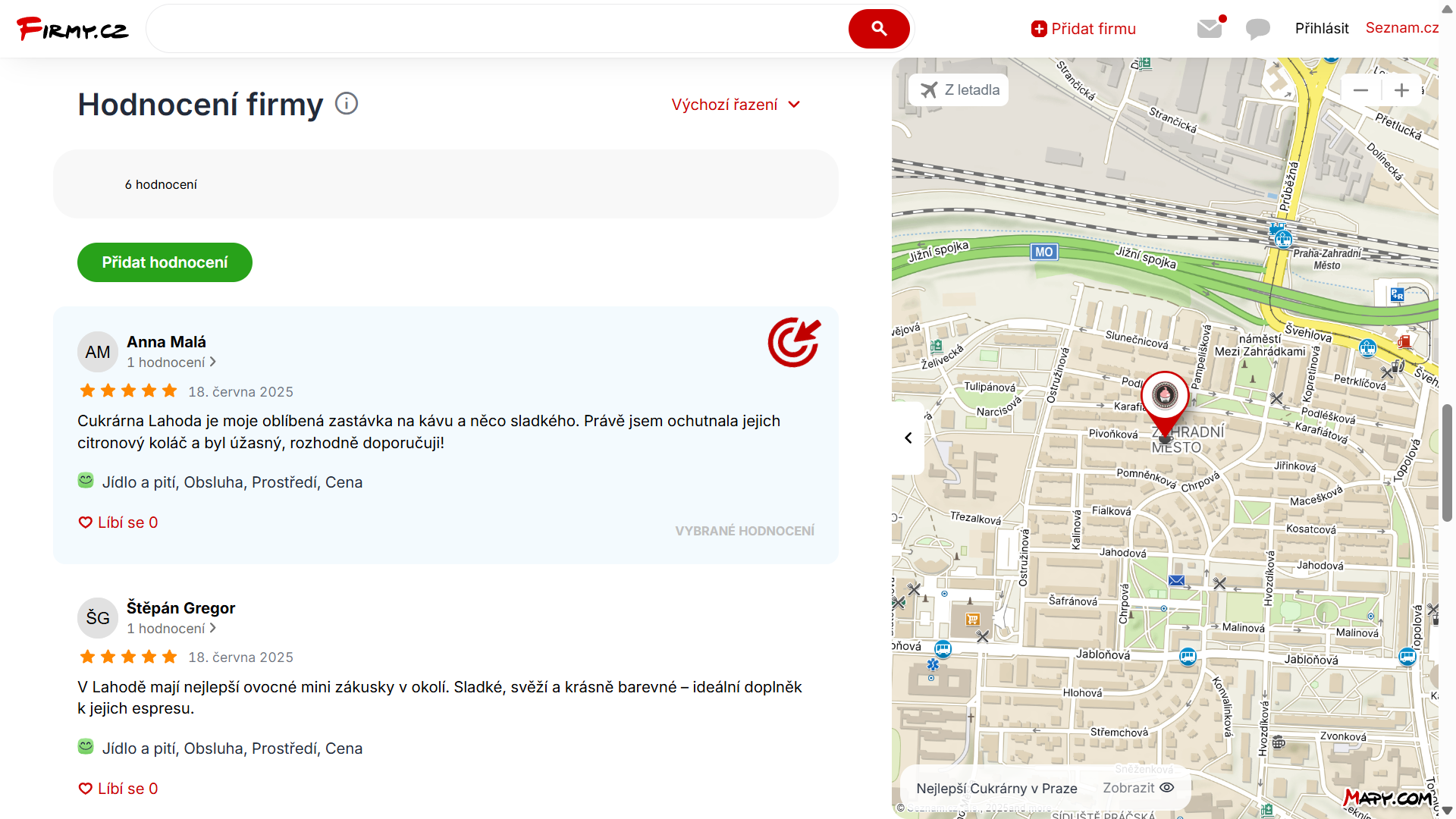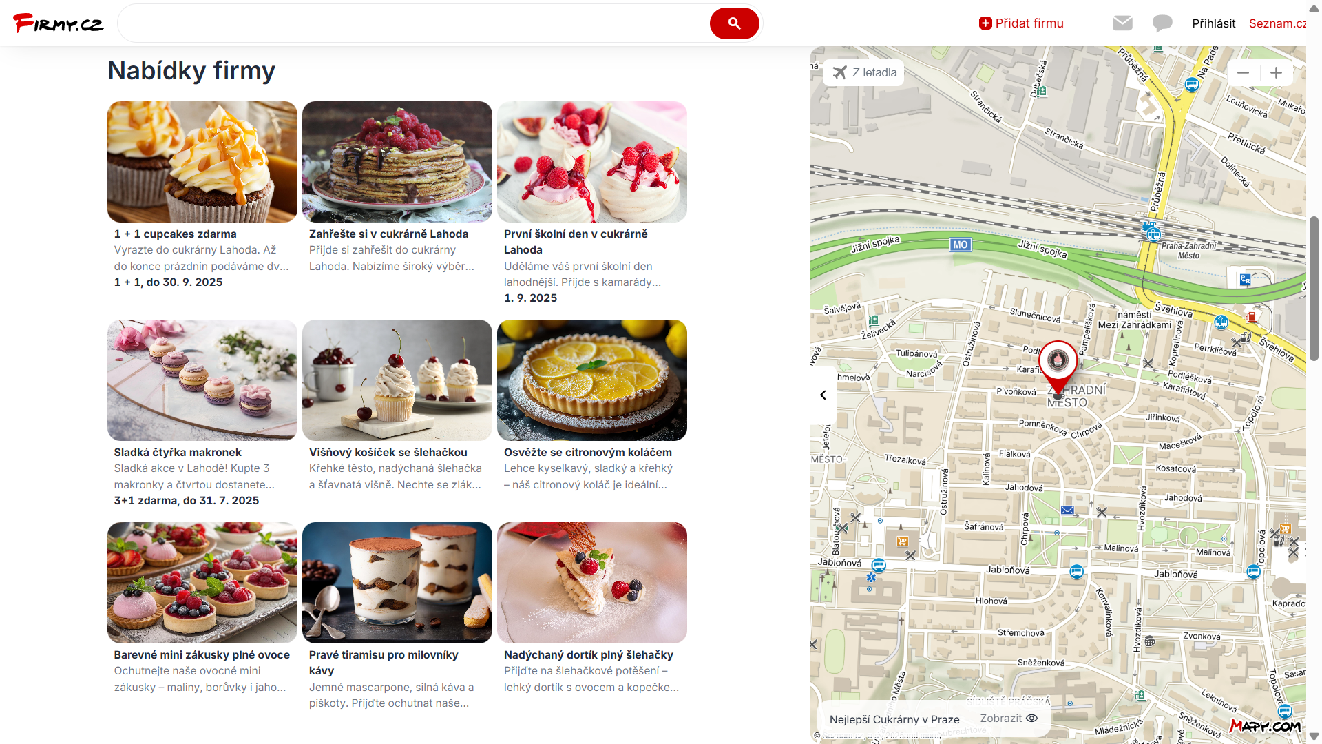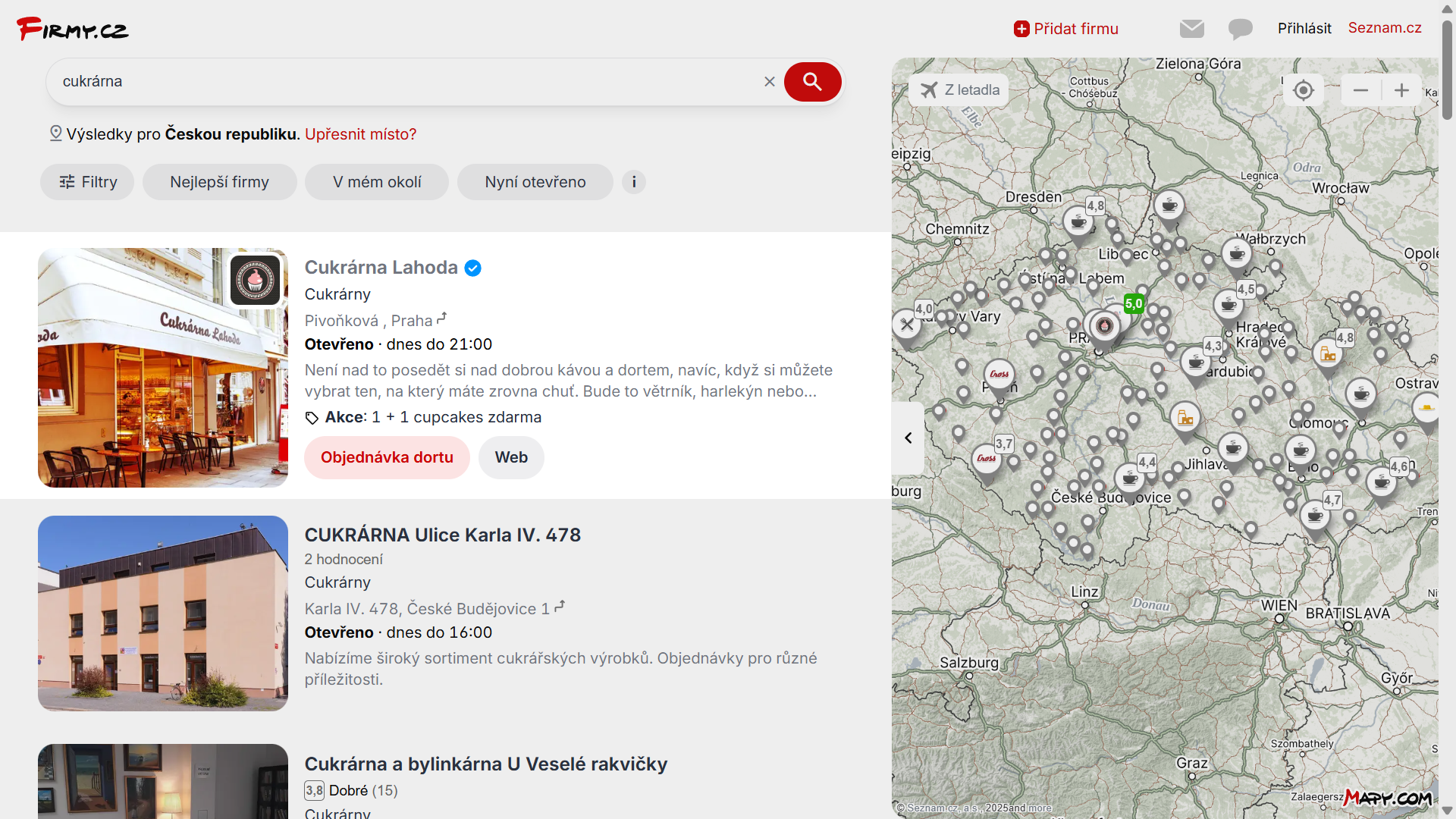 Přednostní pozice Firmy.cz, hledání Seznam.cz, Mapy.cz
