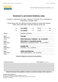 Z důvodu havárie proběhne dnes 11.3.2025 odstávka vody v části obce