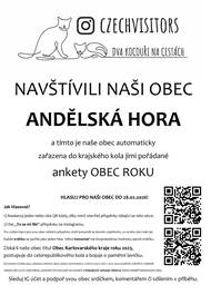 Naše obec se zapojila do ankety Obec roku 2025 od Czechvisitors. Hlasujte pro nás do 28. února 2026 a pomozte nám získat titul Obec Karlovarského kraje roku 2025. Postoupíme tak do celorepublikového kola a budeme mít šanci vyhrát pamětní lavičku.