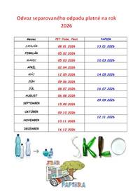 Odvoz separovaného odpadu platné na rok 2026 v zjednodušenej forme Az osztályozott hulladékgyűjtés időpontjai a 2026 évre egyszerűsített változatba