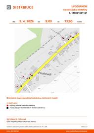 Před 14 dny⚡️ Plánovaná odstávka elektřiny – 8. dubna 2026Upozorňujeme občany na plánované přerušení dodávky elektřiny v několika částech Bakova nad Jizerou. Odstávky proběhnou postupně během dne: 🕢 7:30–11:00 📍 ul. Brigádnická (č. p. 809, 835–838) 🕦 11:30–13:00 📍 ul. Ku splávku (č. p. 711, 850) 📍 ul. Pražská (č. p. 732) 🕐 13:00–15:00 📍 ul. Rybní důl (č. p. 210, 221, 222, 260, 319) 👉 Dbejte prosím zvýšené opatrnosti – i během odstávky je nutné považovat elektrická zařízení za pod napětím. Děkujeme za pochopení.