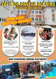 Vážení rodičia, zápis prváčikov na školský rok 2026/2027 je spustený elektronickou formou na webovej stránke ZŠ. Tešíme sa na Vás na zápise v sobotu 25. apríla.