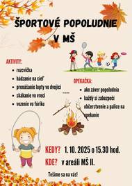 Milí rodičia, dodatočný zápis do SZUŠ sa uskutoční dňa 4.9.2025 od 15:00 hod. do 17:00 hod.