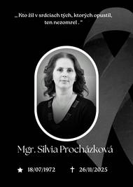 S hlbokým zármutkom a bolesťou v srdci oznamujeme všetkým kolegom, priateľom, známym a žiakom Základnej školy s materskou školou Bánov, že nás navždy opustila naša milovaná kolegyňa a obľúbená pani učiteľka Mgr. Silvia Procházková .