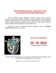 Bansky Studenec: 22.10. v utorok v dopoludnajsich hod. sa v obci uskutocni zvoz elektroodpadu Prosime, aby ste elektrodpad nechali vylozeny pred branou