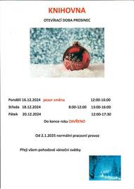 Otevírací doba Městské knihovny Bavorov o vánočních svátcích.