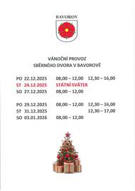 Otevírací doba Městského úřadu v Bavorově během vánočních svátků.