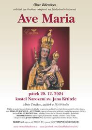 Tradiční adventní koncert Ave Maria - 20. prosince 2024 od 18 hod