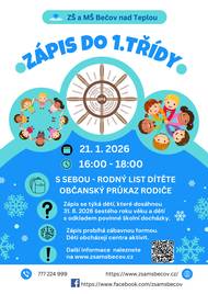 Zápis se týká dětí, které dosáhnou 31.8.2026 šestého roku věku a dětí s odkladem povinné školní docházky.
