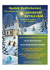 Přijďte s námi společně prožít chvíle 1. adventní neděle 30. 11. 2025 od 18.00 h u kostela sv. Antonína Paduánského v Bedřichově. Od 18.00 hodin zazní živé koledy a v 18.30 h rozsvítíme vánoční strom. Na akci zve spolek Bedřichováci.