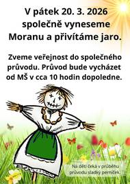 Vážení občané, ve čtvrtek 19.3. a v pátek 20.3.2026 bude probíhat v celé obci strojní čištění silnic a místních komunikací. Žádáme laskavě majitele vozidel o jejich přeparkování mimo komunikace tak, aby mohl být úklid proveden. Děkujeme za trpělivost a spolupráci.