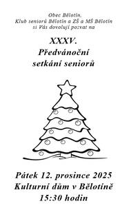 V pátek 12. prosince 2025 se koná v sále Kulturního domu v Bělotíně od 15:30 tradiční předvánoční setkání dříve narozených z Bělotína, Kunčic, Lučic a Nejdku.