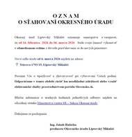 Okresný úrad Liptovský Mikuláš oznamuje samospráve a verejnosti, že od 16.februára 2026 do 06.marca 2026 bude svoju činnosť vykonávať v obmedzenom režime z dôvodu presťahovania sa do nových priestorov. Nové sídlo úradu od 6.marca 2026 nájdete na adrese: - Štúrova 1793/19, Liptovský Mikuláš