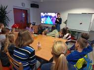 Ve čtvrtek 26. 2. se děti z divadelního kroužku účastnily přednášky o dabování filmů a dabingové režii.