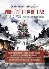 Pozývame všetkých občanov i návštevníkov obce na Gemerské remeselné Vianočné trhy v Betliari, ktoré sa budú konať 19.-21.12.2025 v Malom parku v Betliari. Čaká Vás viac ako 30 remeselníckych stánkov, pekný program a tradičné chute a vône Vianoc. Tešíme sa na Vašu účasť.