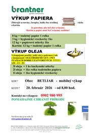 Dňa 20. februára 2026 sa v obci Betliar uskutoční mobilný výkup papiera a použitých olejov. Zbierajú sa noviny, časopisy, knihy bez textilnej väzby a kartón, pričom je potrebné, aby bol zber zviazaný.