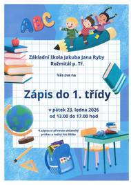 Zápis do 1. třídy ZŠ J.J. Ryby v Rožmitále p. Tř. se uskuteční dne 23.1.2026 od 13,00 do 17,00 hodi