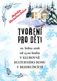 Kdy:Zveme všechny malé umělce na tvořivou dílnu, která se uskuteční 28. ledna 2025 od 15:00 v přísálí Kulturního domu v Bezdružicích. Přijďte s námi tvořit a prožijte odpoledne plné kreativity a zábavy. Vhodné pro děti všech věkových kategorií.