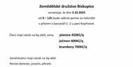 ZD Biskupice oznamuje svým členům, že se od 31. 10. 2025 budou rozvážet naturálie.